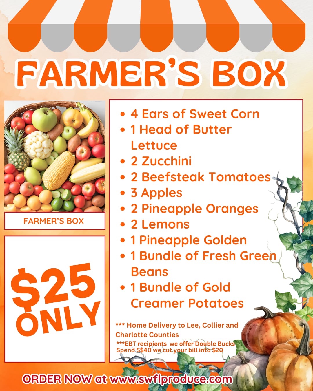 Swfl Produce Co Op weekly share! Order now until Thursday at 12:00! Delivery and pickup is Friday November 7th and pick up Saturday November 8th. We will have Fresh Eggs, Honey!