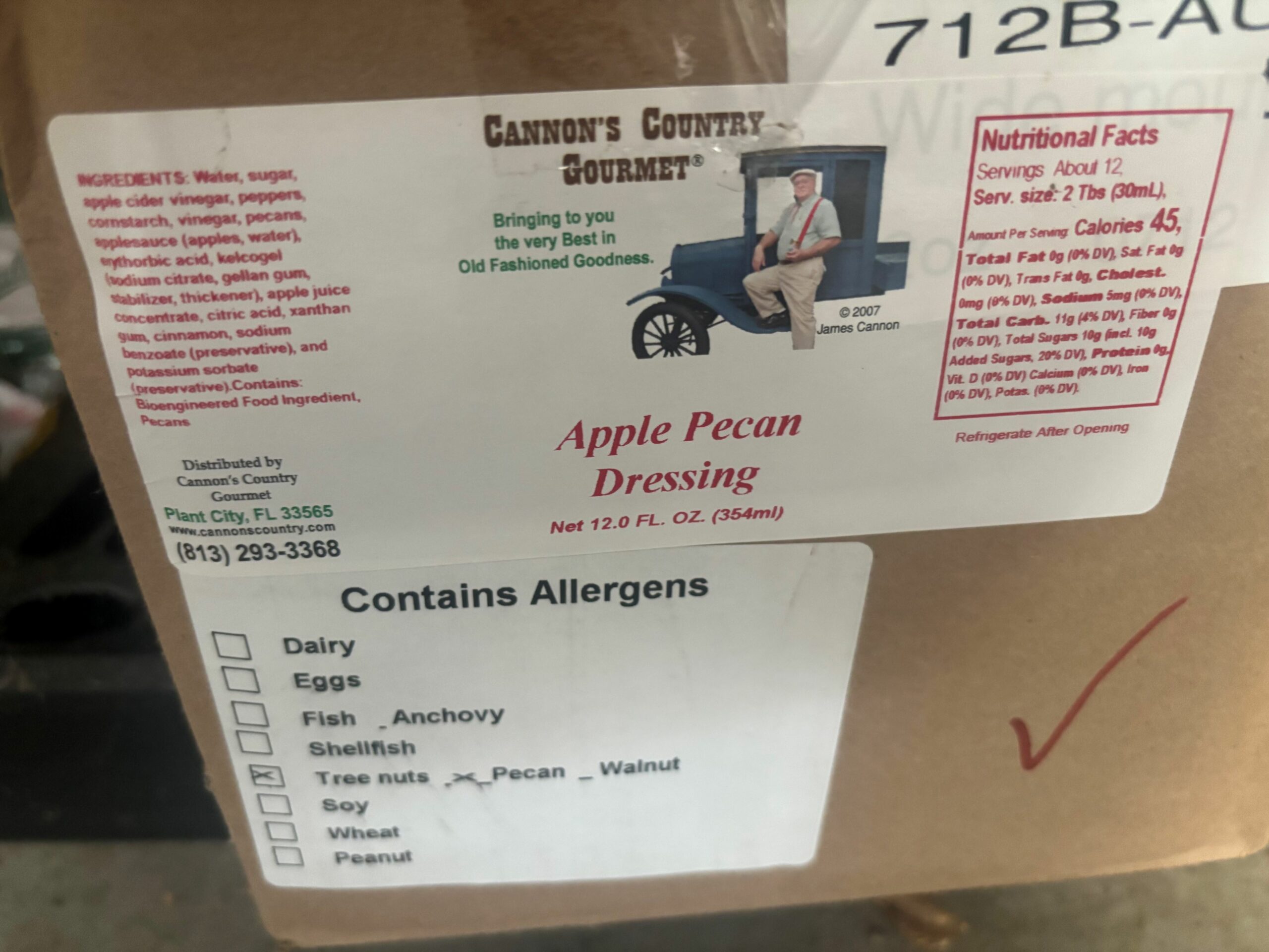 Delicious Apple Pecan Salad Dressing made by Cannon’s Country Gourmet Amish sold in a 12 ounce glass jar