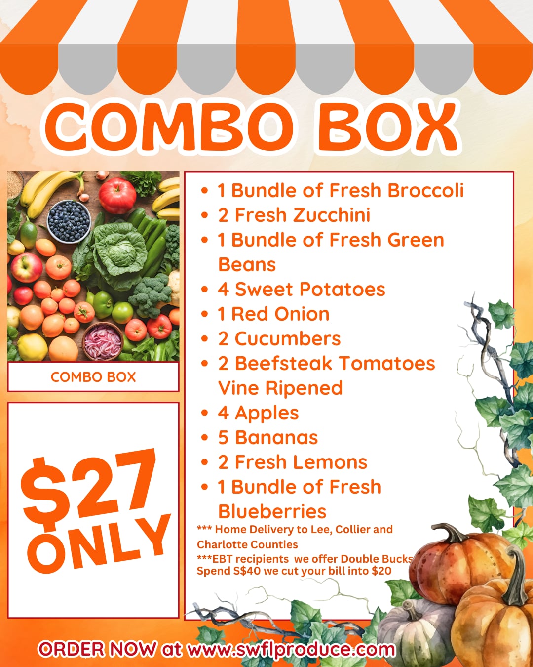 1/2 Bushel Box full of mixed fruits and veggies *