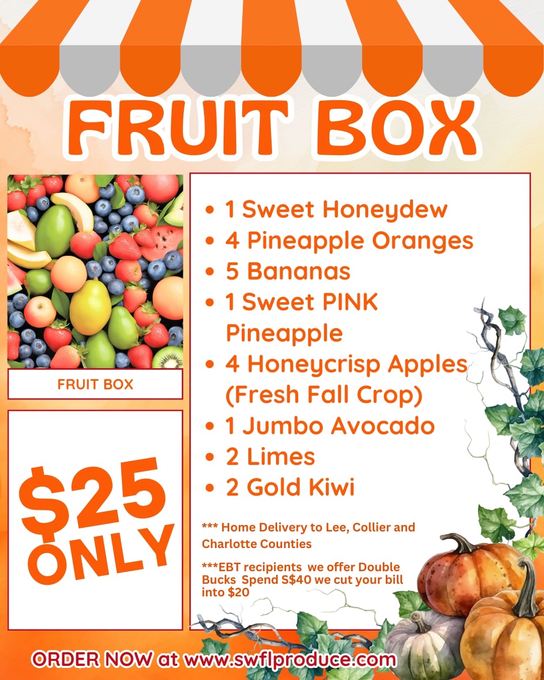 Swfl Produce Co Op weekly share! Order now until Thursday at 12:00! Delivery and pick up is Friday October 31st and pick up Saturday November 1st. We will have Fresh Eggs, Honey!